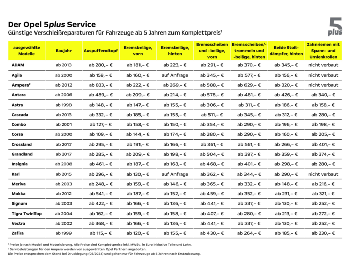 ANGEBOTE ZUR OPEL SERVICE KOMPLETTPREIS-OFFENSIVE²